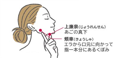 上廉泉に親指を頬車に人差し指の