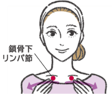 鎖骨下リンパ節に両手のひらを当て、リンパ節のある脇下に向かってゆっくり押し流す。